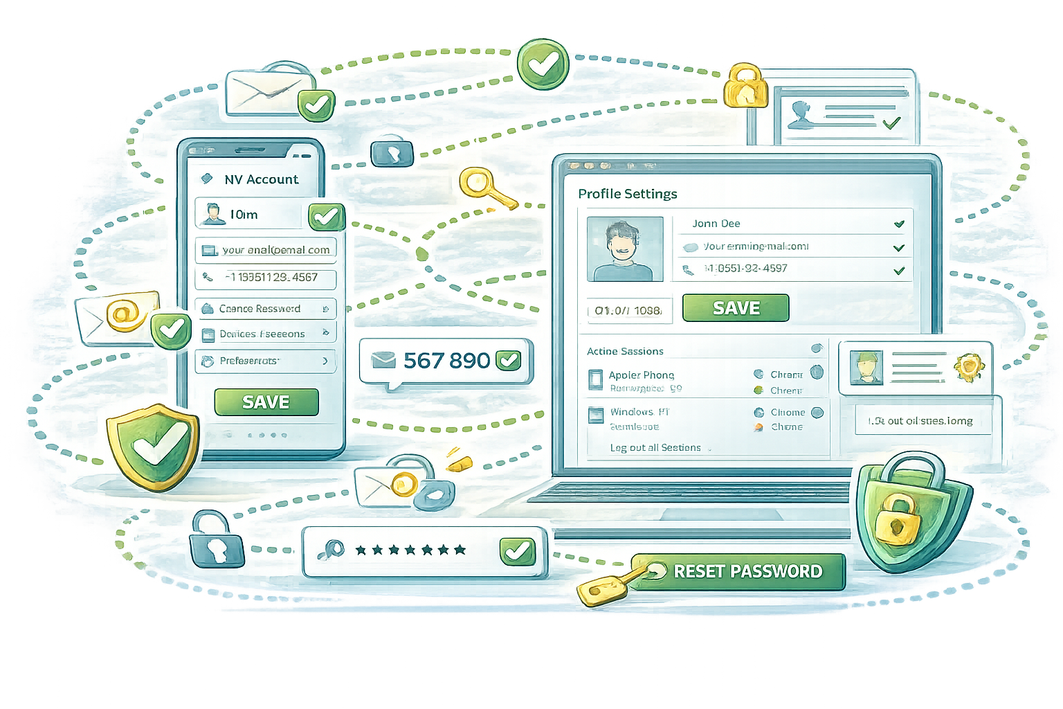 A strong CIAM foundation lets customers stay in control of their own account, without friction. This capability covers profile updates (email/phone/address), verified changes, account recovery flows, password resets, device and session visibility, and self-service settings, all designed for high-volume consumer scenarios and smooth mobile experiences.