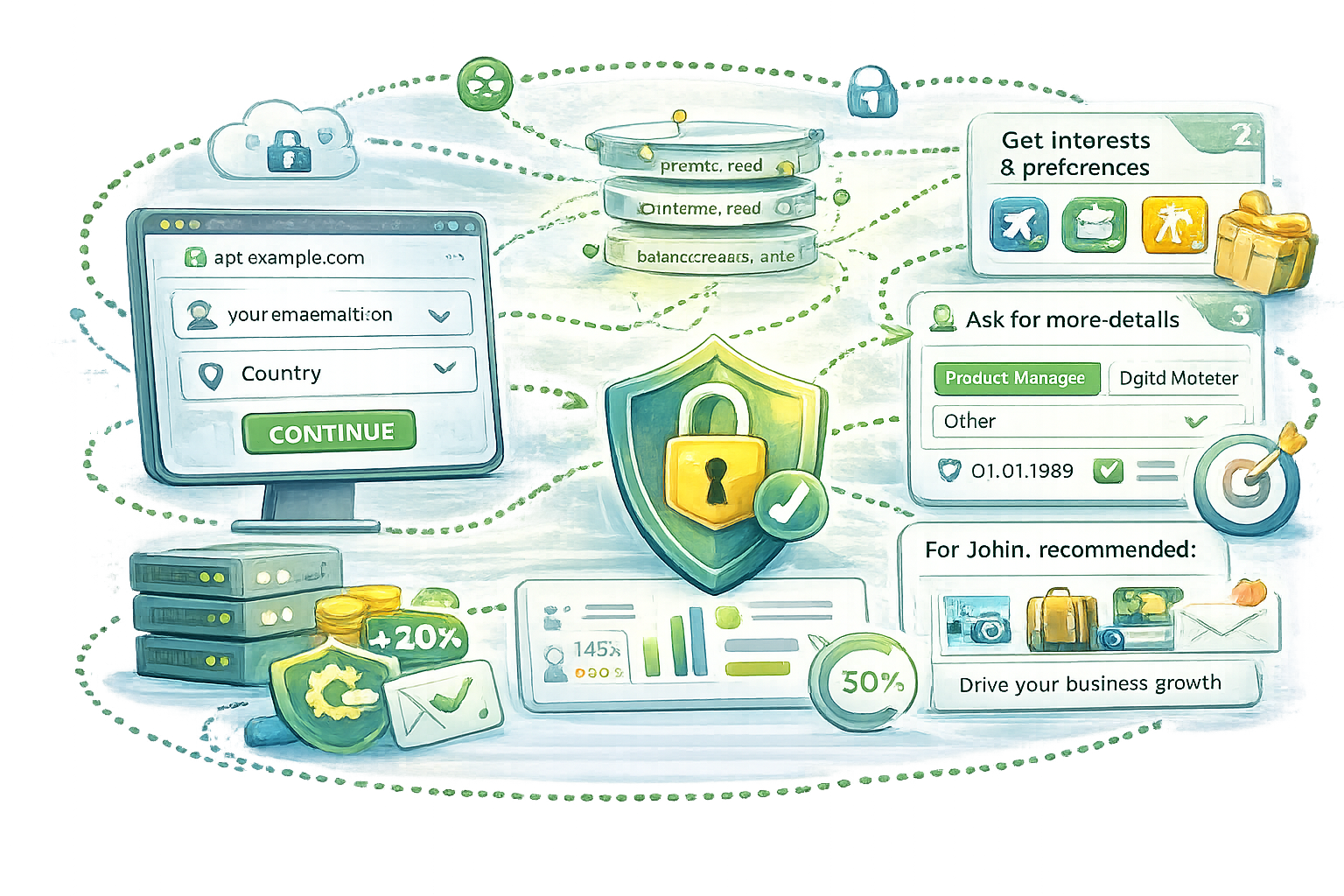 This capability improves sign-up completion and reduces abandonment by keeping the first step lightweight. It also unlocks better personalization and targeting because the data you collect is more relevant, more accurate, and gathered with clear context. Over time, you can tailor content, offers, and next-best actions based on what the customer has actually shown interest in, not just what they typed once during registration.